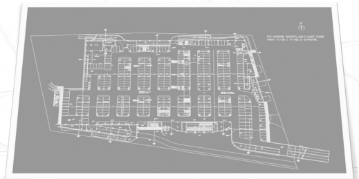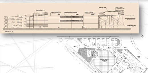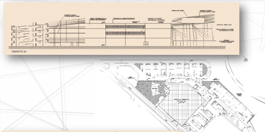 PRESTAZIONI: Redazione completa di elaborati architettonici esecutivi di un nuovo centro commerciale con parcheggio multipiano